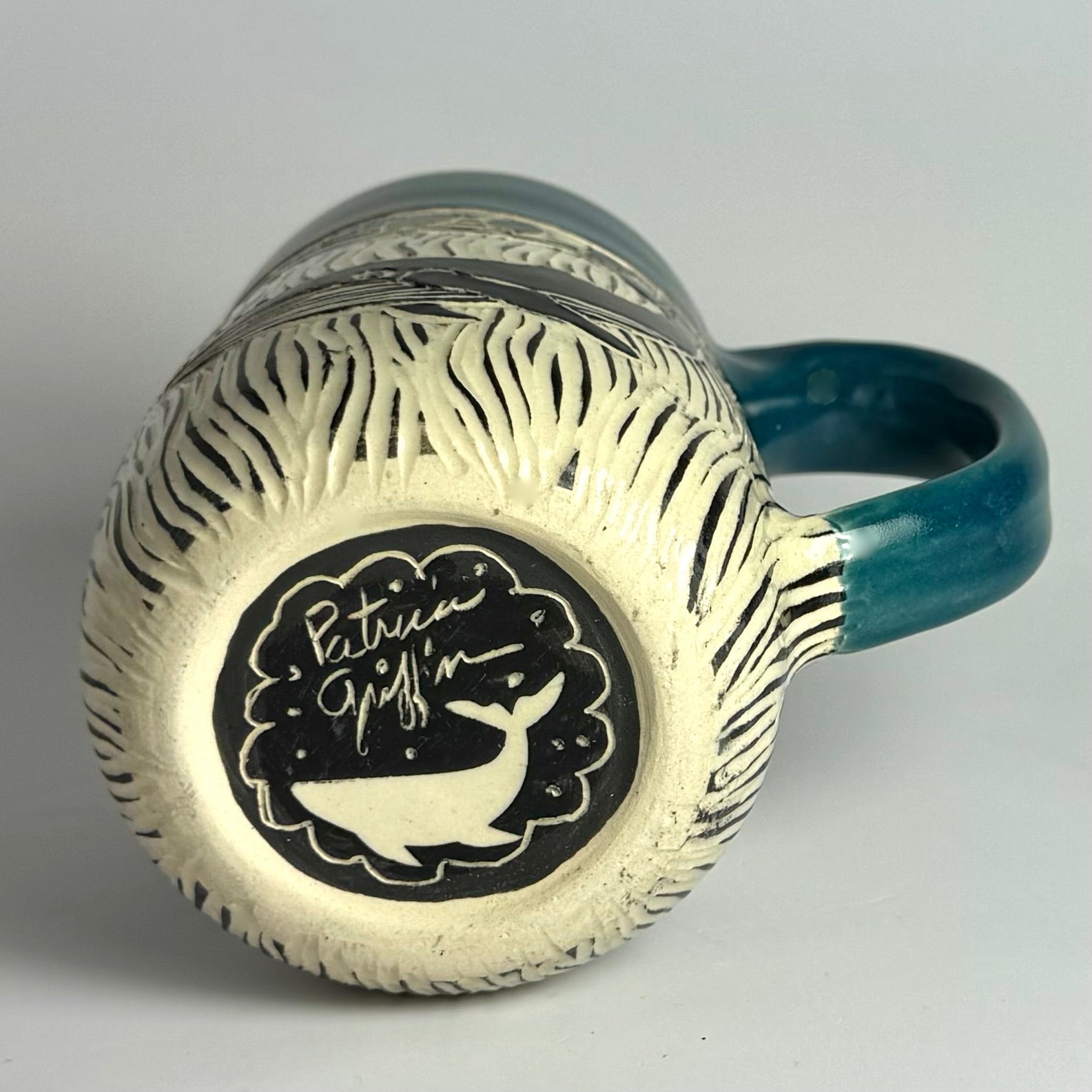 This stoneware piece is handmade and hand-etched in my woodcut-style design, using traditional sgraffito (etching) techniques in a contemporary way.